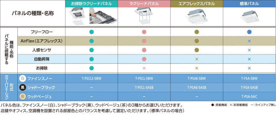 | お掃除ラクリーナパネル | ラクリーナパネル | エアフレックスパネル | 標準パネル | |