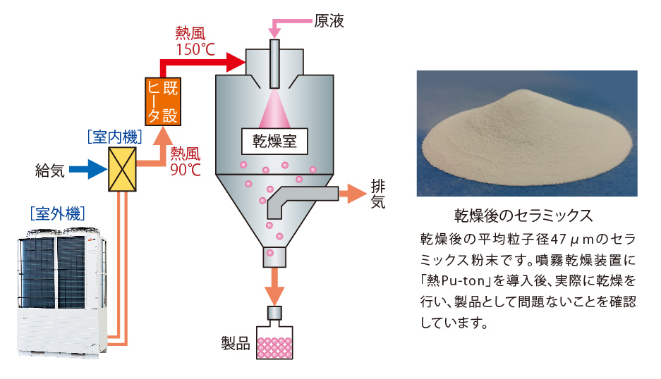 省エネルギー、CO2排出量削減およびランニングコスト削減ニーズの高い各業種の乾燥工程で威力を発揮する「熱Pu-ton」です。