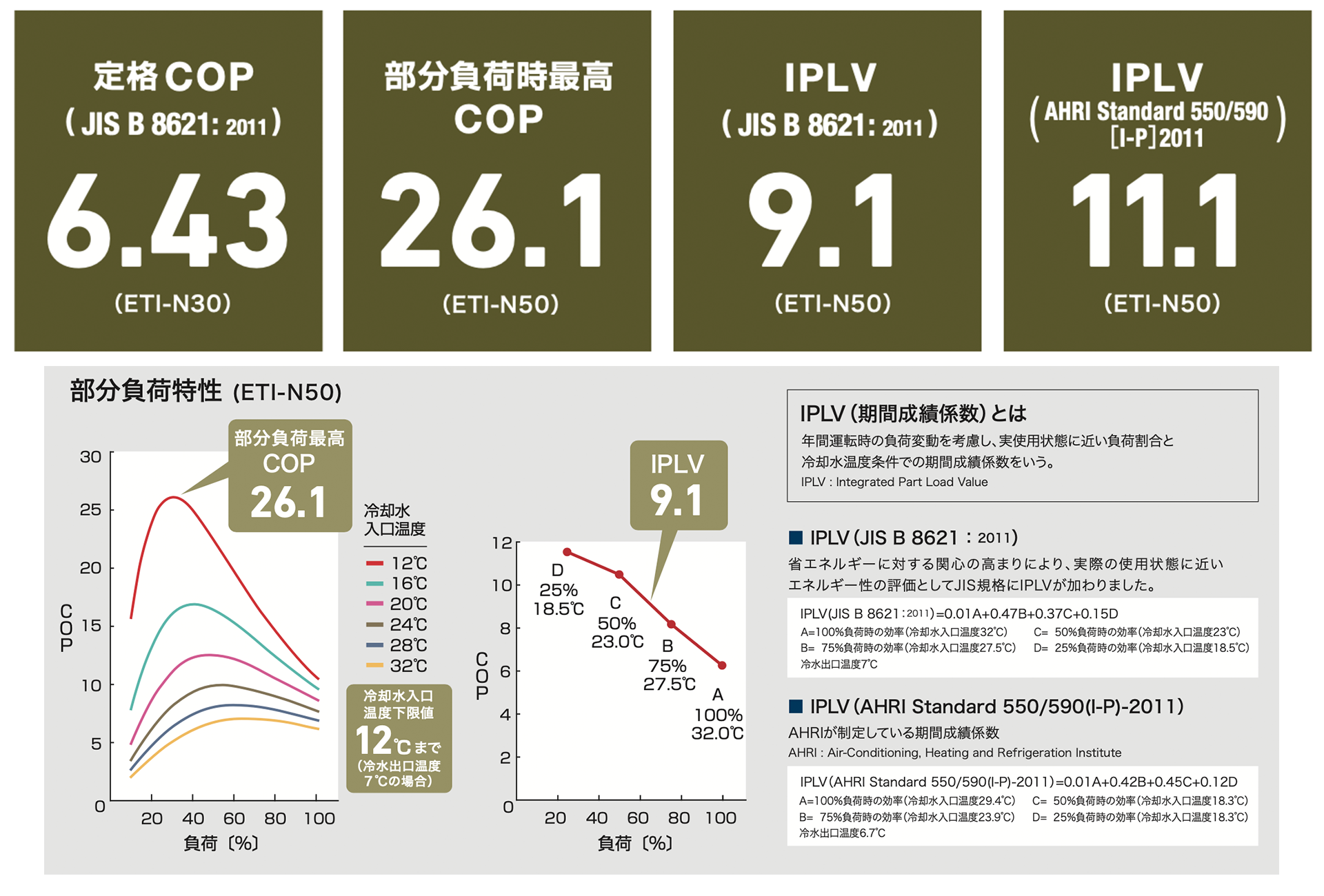 ターボ冷凍機ETI-Nシリーズは、地球温暖化係数(GWP)が1、オゾン層破壊係数(ODP)がゼロの冷媒を採用しています。