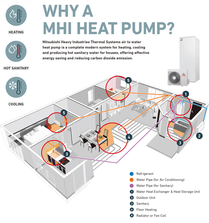 Hydrolution is a complete modern system for heating, cooling and producing sanitary hot water. It absorbs ‘free’ heat from outdoor air and amplifies to generate ideal temperatures and hot water swiftly and efficiently.